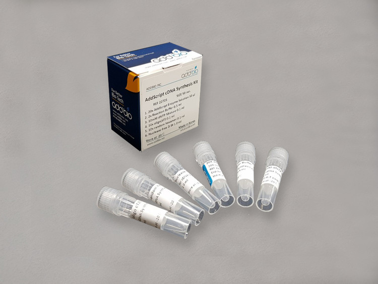 کیت AddScript cDNA Synthesis Kit شامل تمام مواد موردنیاز برای سنتز رشته اول cDNA از RNA است. این کیت برای کاربردهای عمومی تحقیقاتی و همچنین Real-Time PCR (مانند استفاده از رنگ SYBR Green I® یا پروبهای TaqMan®) قابل استفاده میباشد.